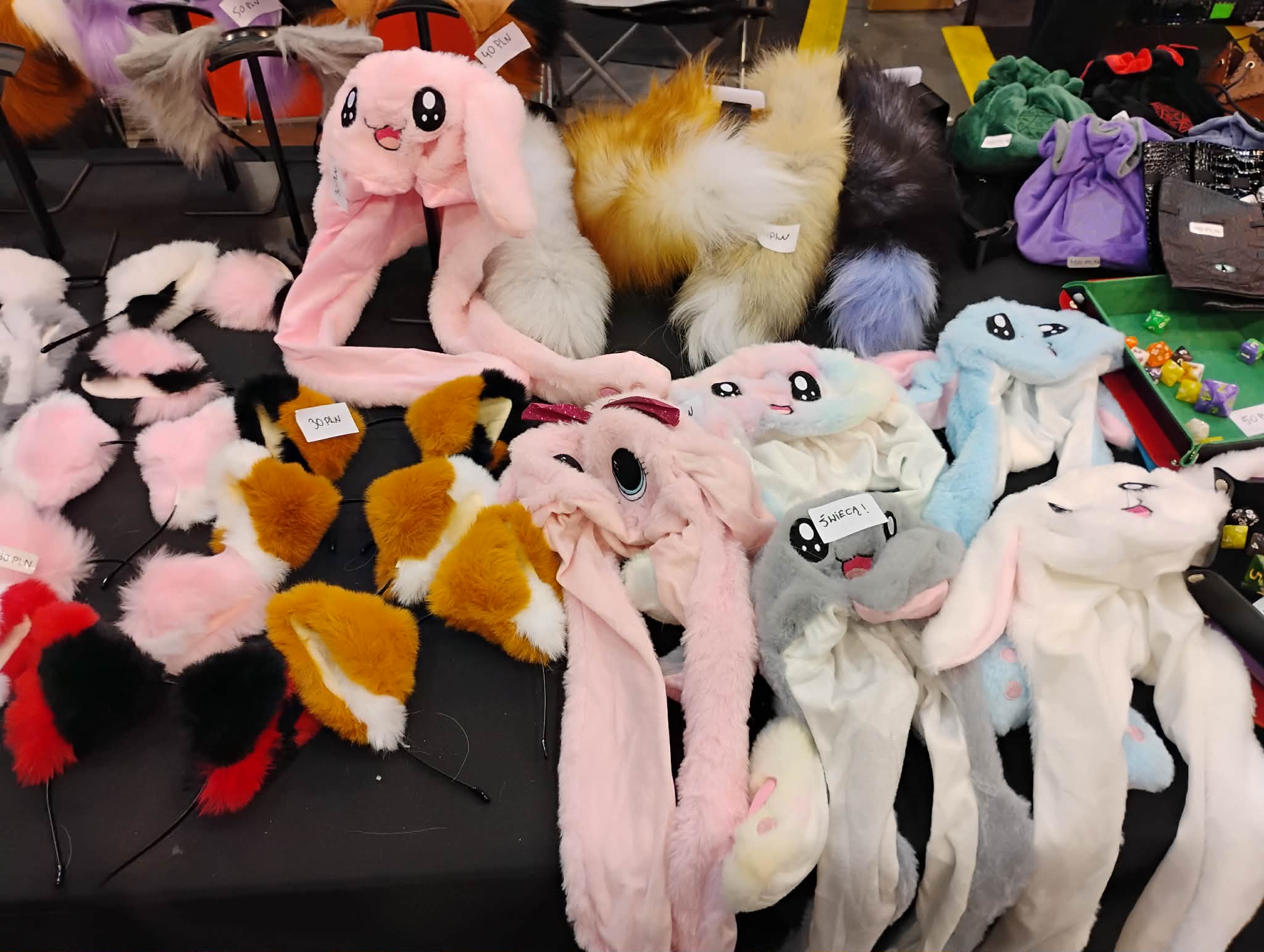 Do wypatrzonych ciekawostek zaliczyłbym z pewnością kocie łapki, które po naciśnięciu wydają odgłos kaczusi. Doznanie niesamowite, wzmożone obecnością obok spotkanego przypadkiem kolegi z ASG. Dostrzegłem również sporo różnego rodzaju uszek i ogonów. Zawsze je lubiłem i muszę sobie takie kiedyś sprawić! Z nimi to tak trochę miałem, że nie było jakby czasu, by poświęcić im dość uwagi. Nie zdążyłem również nic kupić ze stoiska z japońskim jedzeniem, a jest ono zawsze warte uwagi. Poszedłem na dalszy ciąg prelekcji.
