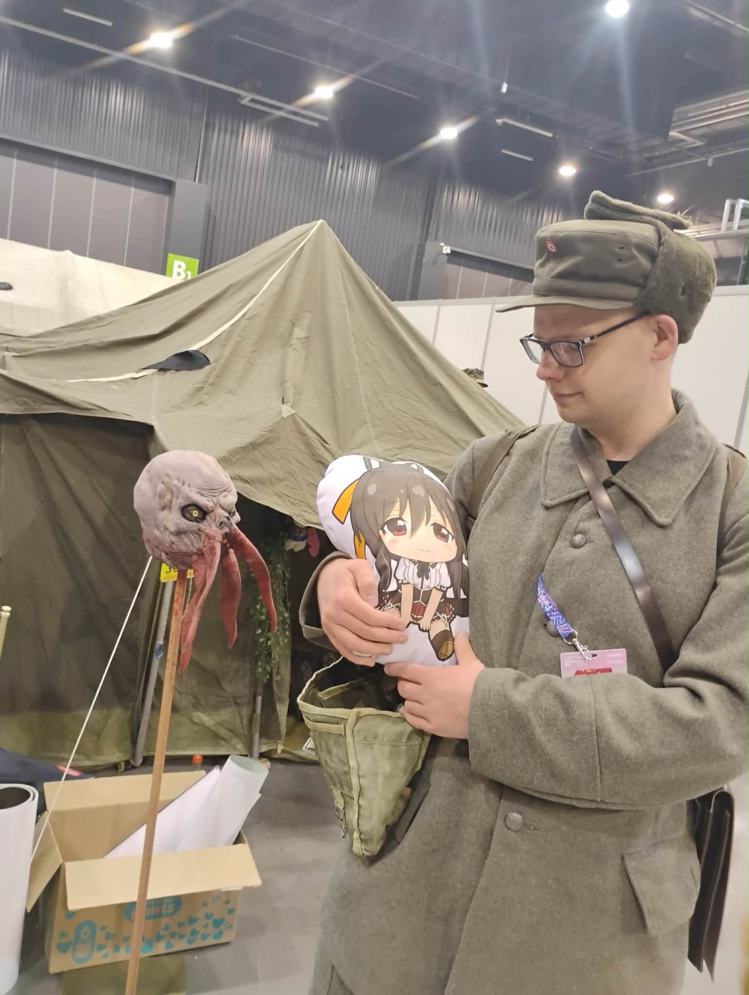 Przebieranki na konwent to fajna sprawa, wiadomo. Ja swoich sił w tym względnie spróbowałem w tym roku po raz pierwszy, poszedłem w klimaty militarne – widoczne rok w rok i wszędzie (może poza Pyrkonem na 2026 rok) oraz będące moją pasją. Pierwotnie planowałem wbić w cyfrowej florze, rosyjskim kamuflażu stale towarzyszącym mi na ASG, ale właśnie ta regularność skłoniła mnie do czegoś nowego. Z innej epoki, inaczej wykonanego, opierającego się na innych zasadach. Dla zabawy zmontowałem więc mieszankę: szwedzki mundur sukienny z 1940 roku, radziecki pas z klamrą i ichnia raportówka z lat 70-80. XX w., austriacka czapka z nausznikami z 2004 roku oraz czechosłowacki plecak Vz. 60 z roku nieznanego. No i klucz programu – peerelowski chlebak na granaty, może polski, ale za to ludowy! – który pełnił rolę nosidełka dla poduszki-przytulanki z moją anime waifu nr 2, Akeno! Miałem też ochotę pobawić się opexem i buldogiem, choć tylko doraźnie, bo długoterminowo można w nim wyjątkowo przekonująco rolplejować wyłącznie śmierć od udaru: jakby się postarać, to nawet lekarz wypisałby akt zgonu... Ale to już żart dla militarnych nerdów! Jak wyszło w praniu z tym, co miałem? Zbijmy piątek i sobotę w jedno.